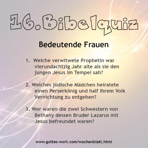 Teste dein Bibelwissen!Antworten vorhanden im nächsten Wochenblatt!