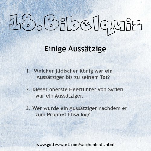 Teste dein Bibelwissen!Antworten vorhanden im nächsten Wochenblatt!Antworten: Bibelquiz von letzter Woche